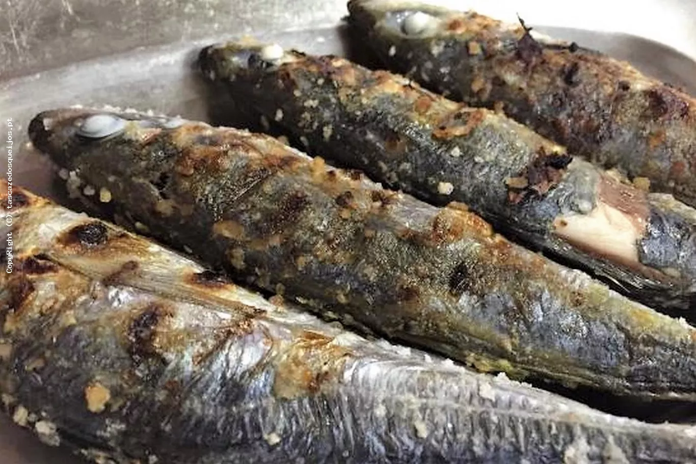 Sardinhas assadas com batata cozida e salada. 1 dose = 12 sardinhas 1/2 dose = 6 sardinhas